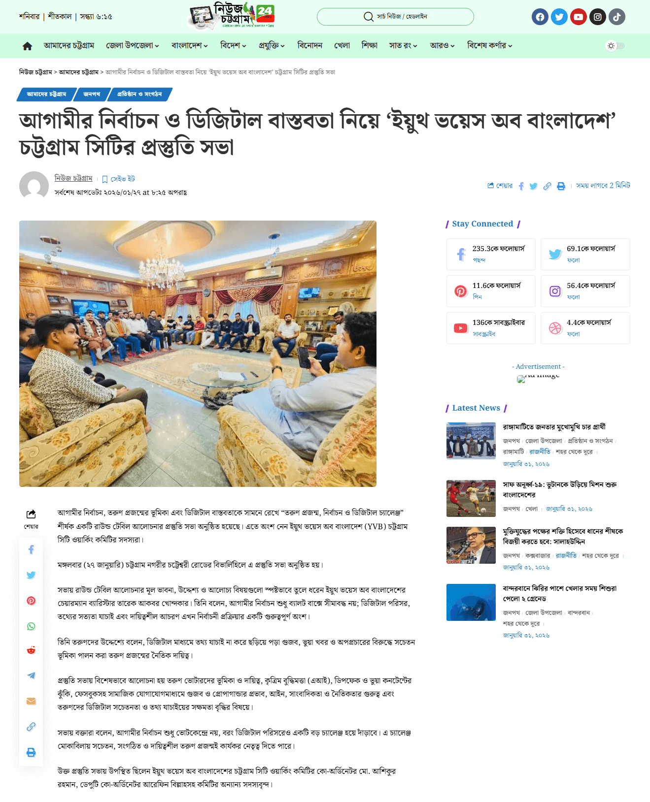 Preparation Meeting for the Round Table Discussion on: “Youth, Upcoming Election & Digital Challenges” Organised by Youth Voice of Bangladesh (YVB), Chattogram City Working Committee